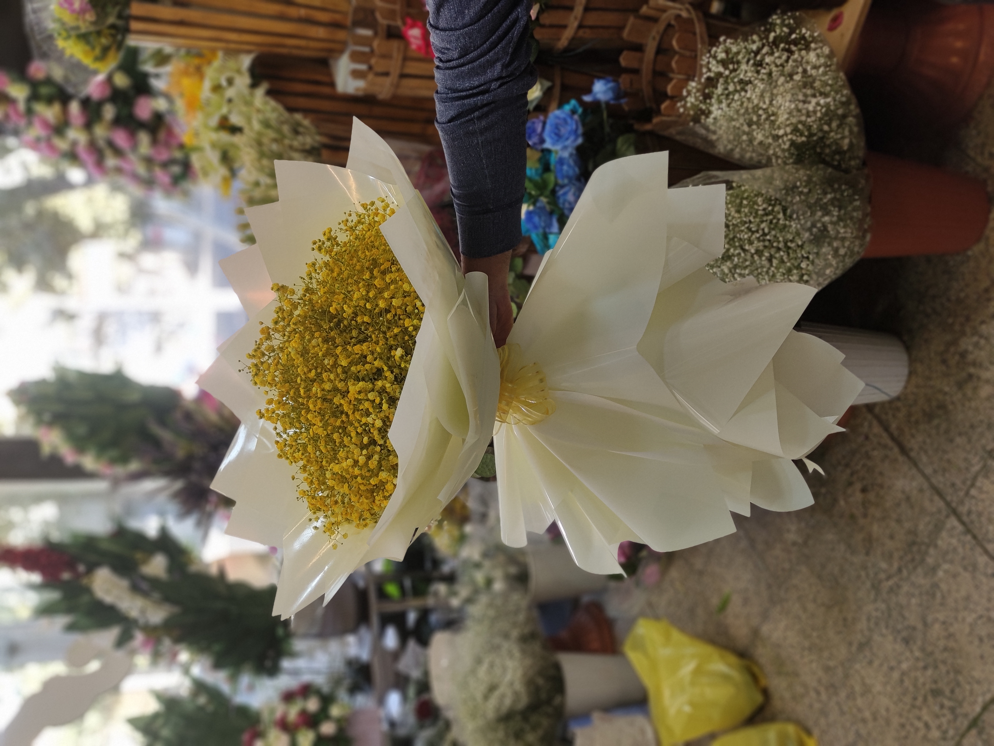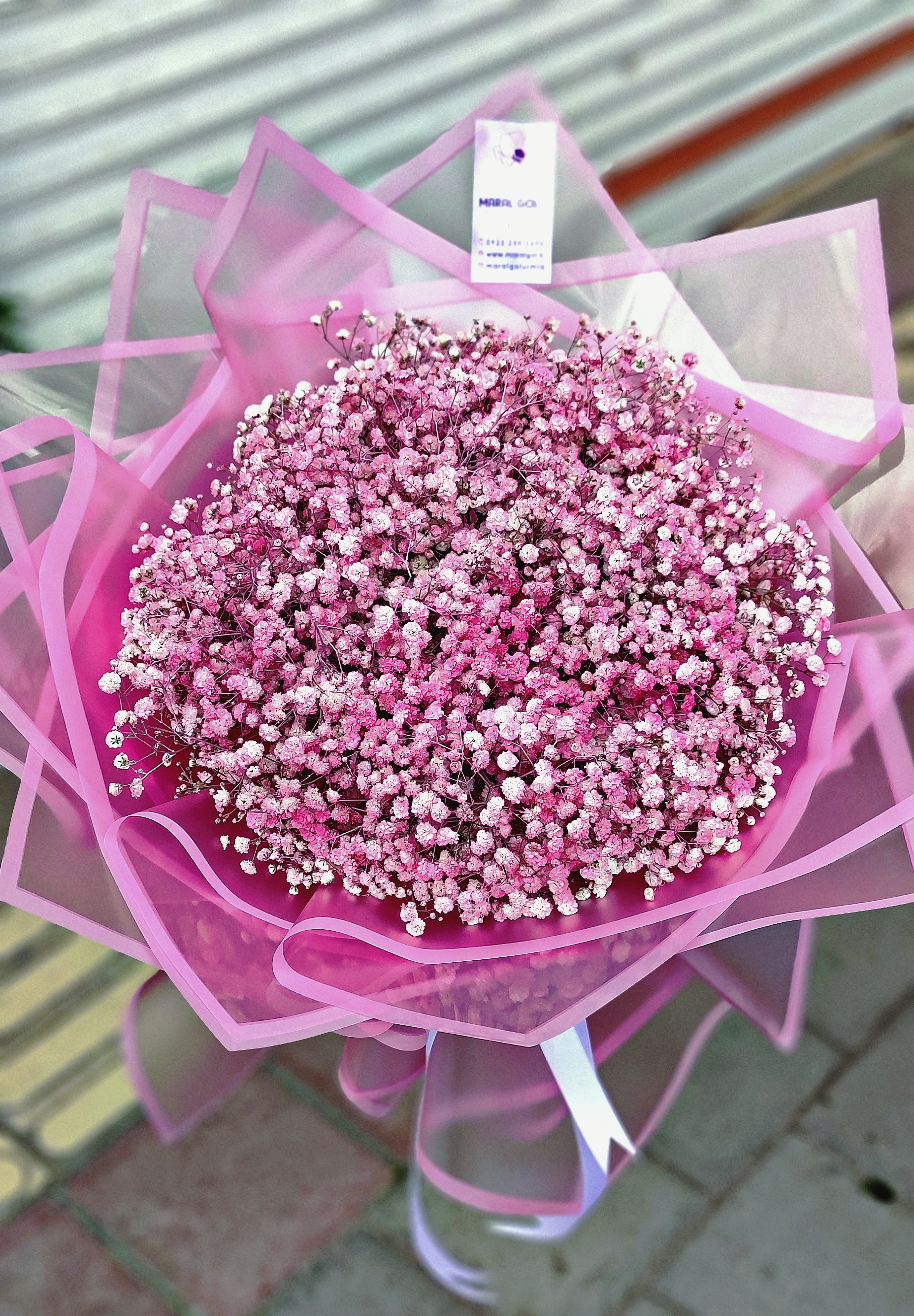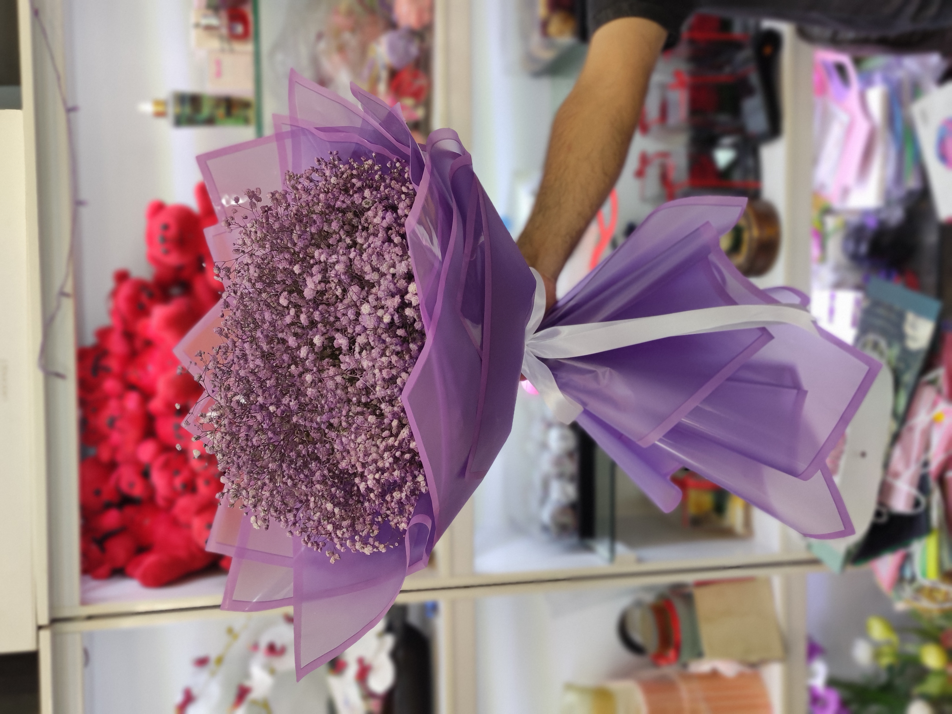 ترکیب زیبای گل ژیپس با بسته‌بندی شیک گلفروشی